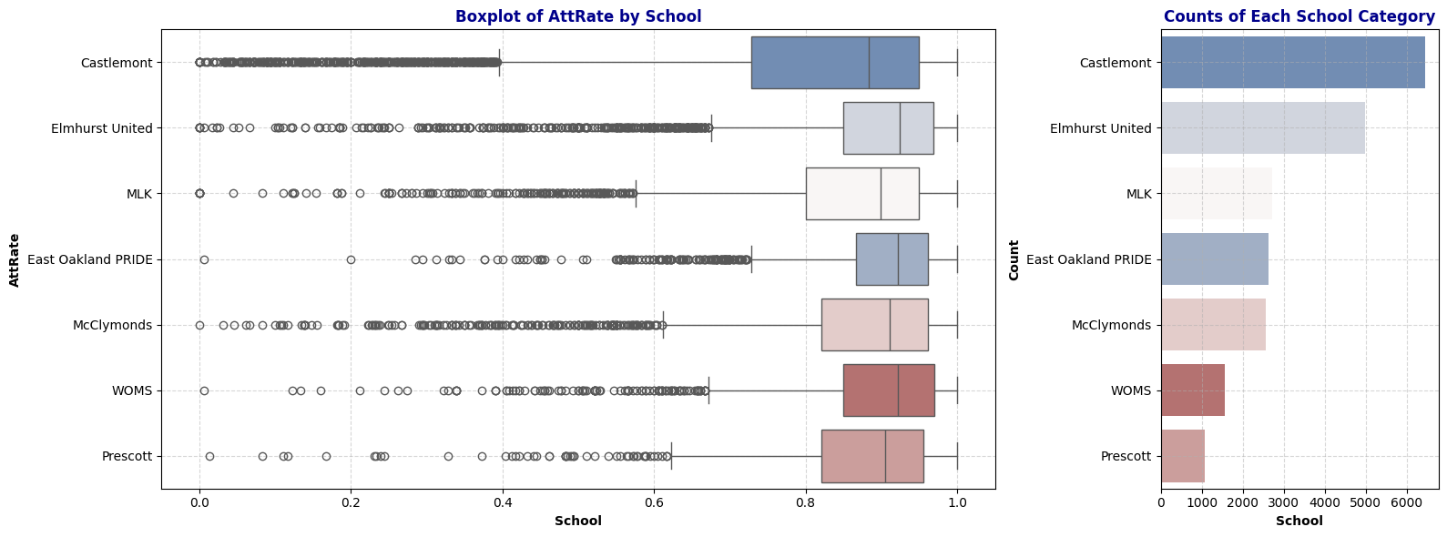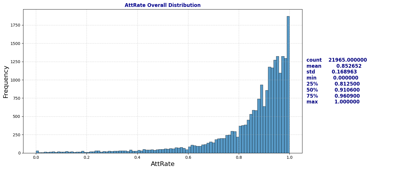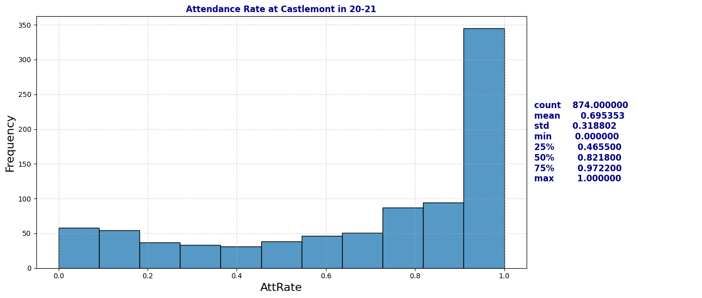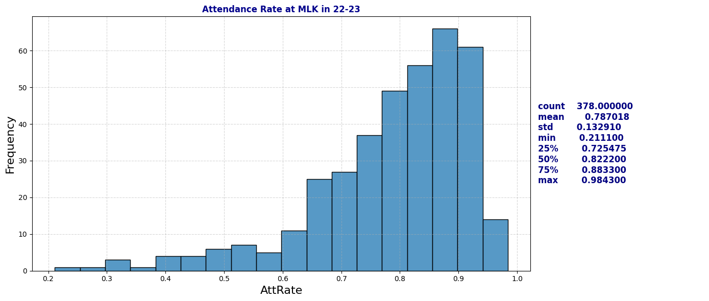 - AttRate: Attendance rate (1 – [Days Absent / Days Enrolled]).