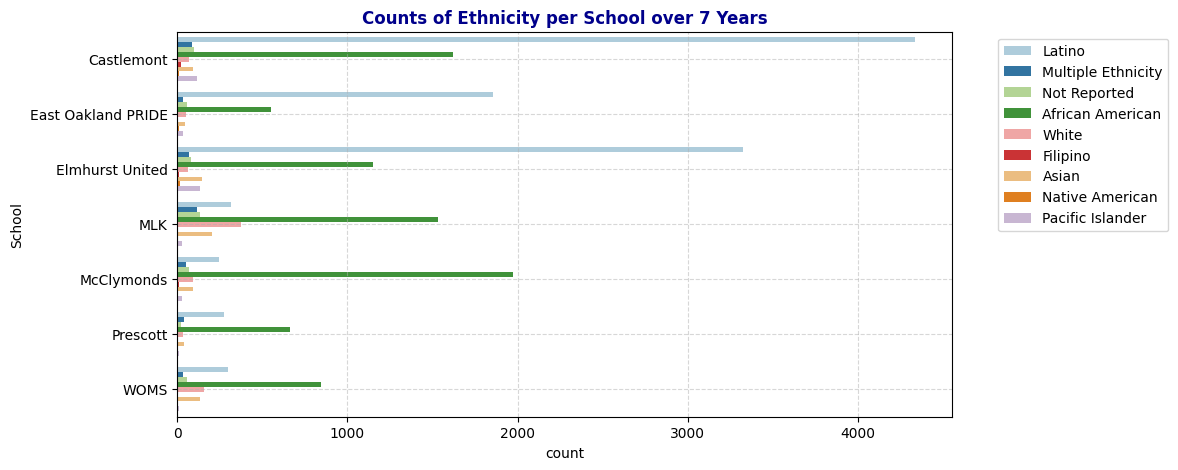 The dataset in this study is collected from seven schools in the Oakland Unified School District over seven years, from 2012 to 2024. The seven schools are: