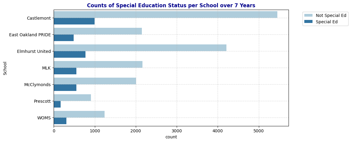 - SpEd: Special Education status (e.g., “Special Ed” or “Not Special Ed”).