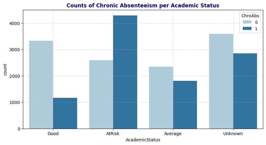 - ChroAbs: Binary variable (1 if absent more than 10% of enrolled days, 0 otherwise).